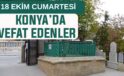 Konya’da bugün kimler vefat etti? 18 Ekim Cumartesi günü