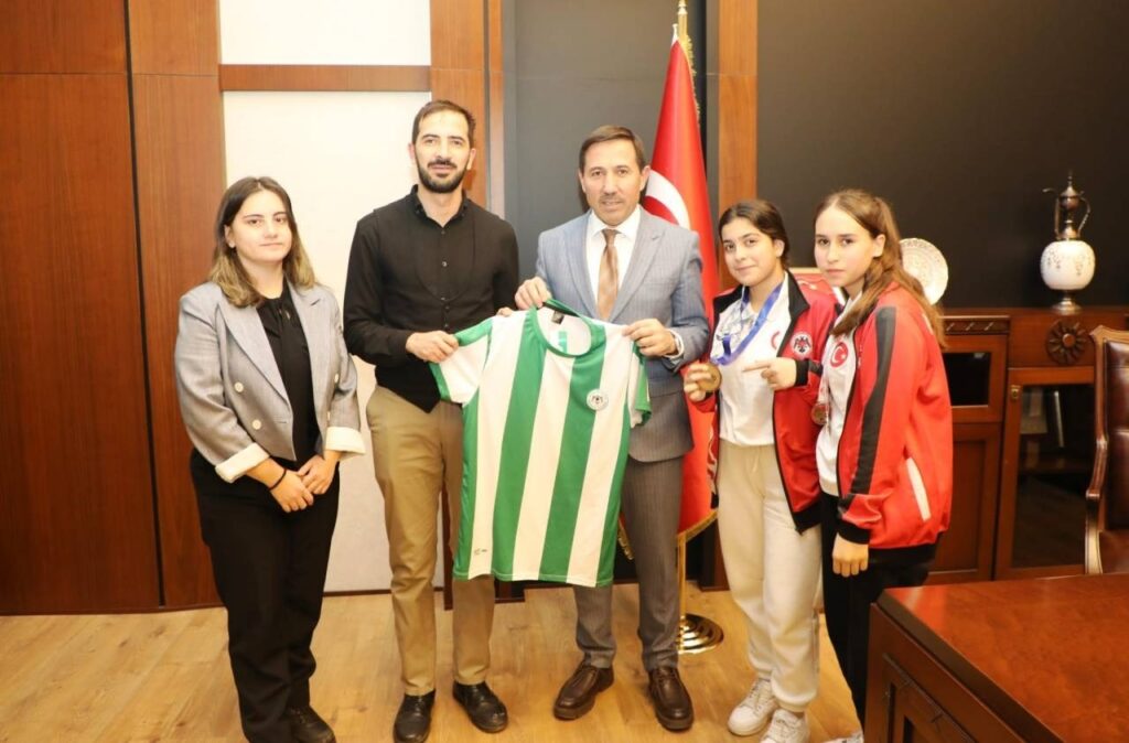 ŞAMPİYON heyetin ilk durağı Konya Çevre, Şehircilik ve İklim Değişikliği İl Müdürlüğü oldu. İl Müdürü Fatih Ayaz tarafından makamında ağırlanan ekip, Avrupa şampiyonluğu süreci ve kulübün gelecek hedefleri hakkında istişarelerde bulundu. İl Müdürü Ayaz, genç sporcuları başarılarından dolayı tebrik ederek ziyaretten duyduğu memnuniyeti dile getirdi.