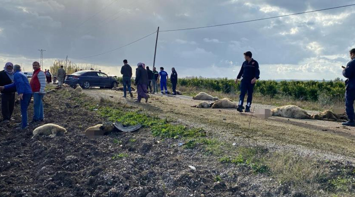 Otomobil koyun sürüsüne daldı 50 hayvan telef oldu
