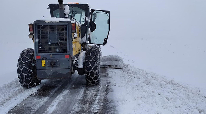 Yolun trafiğe kapanmaması için yol kürüme ve tuzlama çalışmaları yapılıyor.
