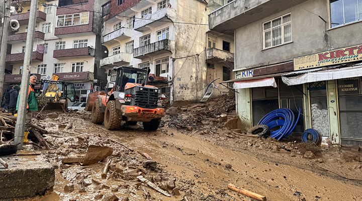 Artvin Borçka’da sağanağın ardından hasar tespit ve temizlik çalışması yapılıyor
