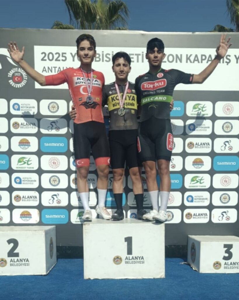 TÜRKİYE Bisiklet Federasyonu tarafından Antalya’nın Alanya ilçesinde düzenlenen Türkiye Kupası 7. Etap Puanlı Yol Yarışları, kriteryum müsabakalarıyla tamamlandı. Alanya Öğretmenevi önünden başlayan kriteryum yarışlarında yaklaşık 450 sporcu mücadele etti. Yarışlarda Konyalı pedallar deyim yerinde ise fırtına gibi eserek madalyaları topladı. Yarışlarda büyük erkekler kategorisinde Konya Büyükşehir Belediye Spor Kulübünden Batuhan Özgür birinci, Konya Gelişim Spor Kulübünden Timur Öztoprak ikinci, Spor Toto Spor Kulübünden Mustafa Said Erdemli üçüncü oldu. Büyük kadınlarda ise Alanya Mevlüt Çavuşoğlu Spor Lisesi Spor Kulübünden Fatmanur Doğan birinciliği, Alanya Belediye Spor Kulübünden Sevim Gerçek ikinciliği, Akut Spor Kulübünden Reyhan Yakışır üçüncülüğü elde etti.