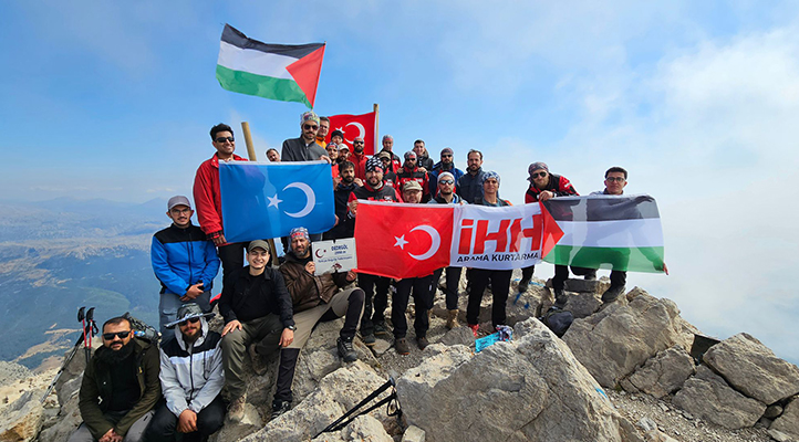 İHH Konya arama kurtarma ekibi, Filistin için Dedegül Zirvesi’ne tırmandı