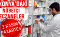 Konya’da bugün hangi eczaneler nöbetçi? 3 Kasım Pazartesi günü
