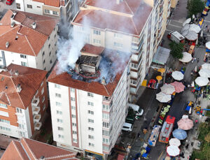 Eskişehir’de 7 katlı binanın çatısı alev alev yanarken onlar alışverişlerine devam etti