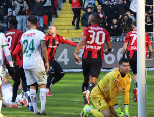 13. dakika Hatayspor savunmasında çıkarken kaptırılan topu kontrol eden Gedson Fernandes’in ceza yayının içinden şutunda meşin yuvarlak yan direkten oyun alanına döndü.