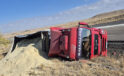Konya’da kontrolden çıkan tır devrildi, sürücü hafif yaralandı