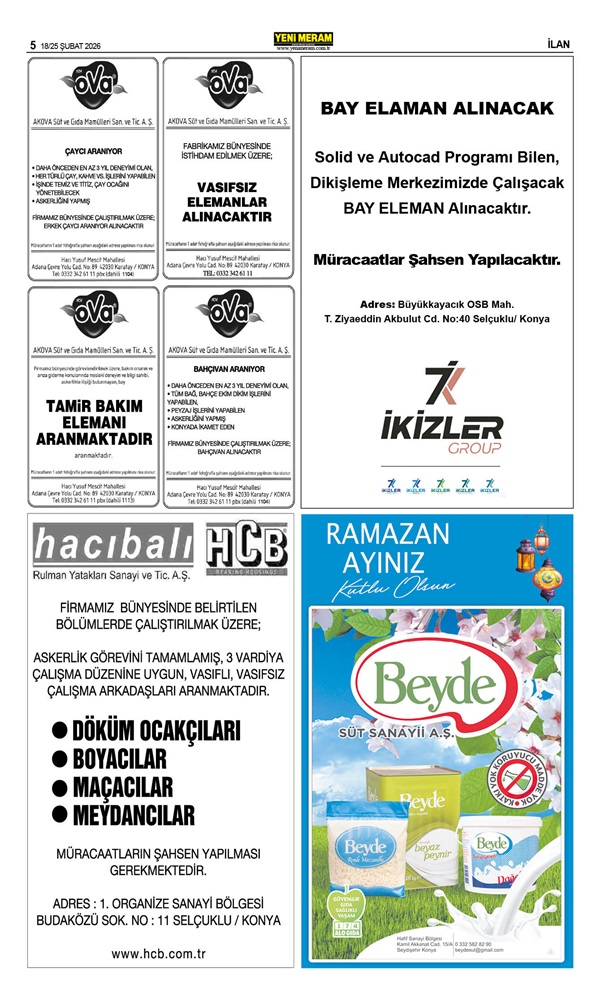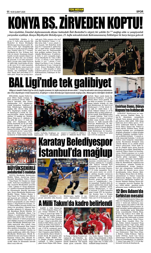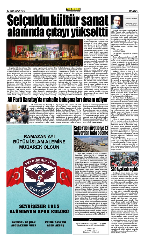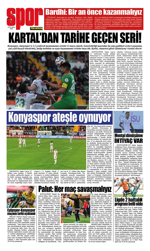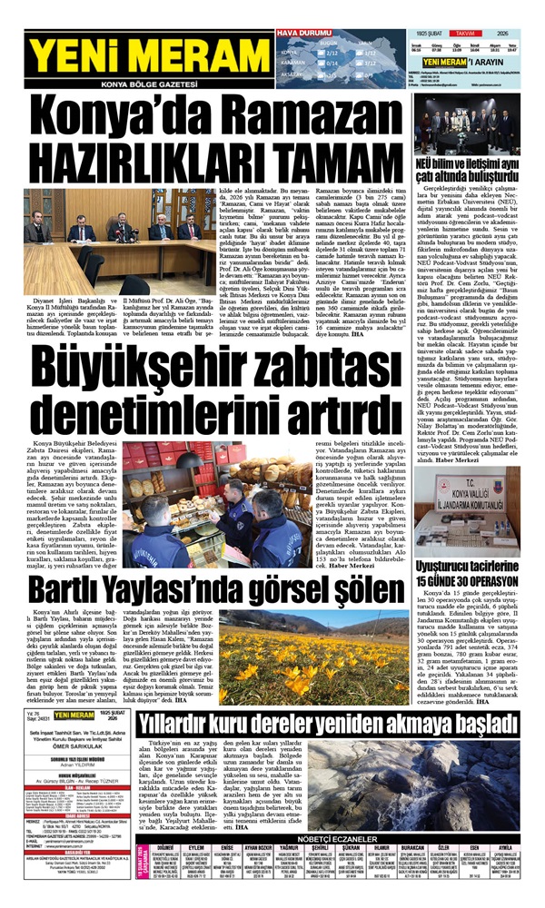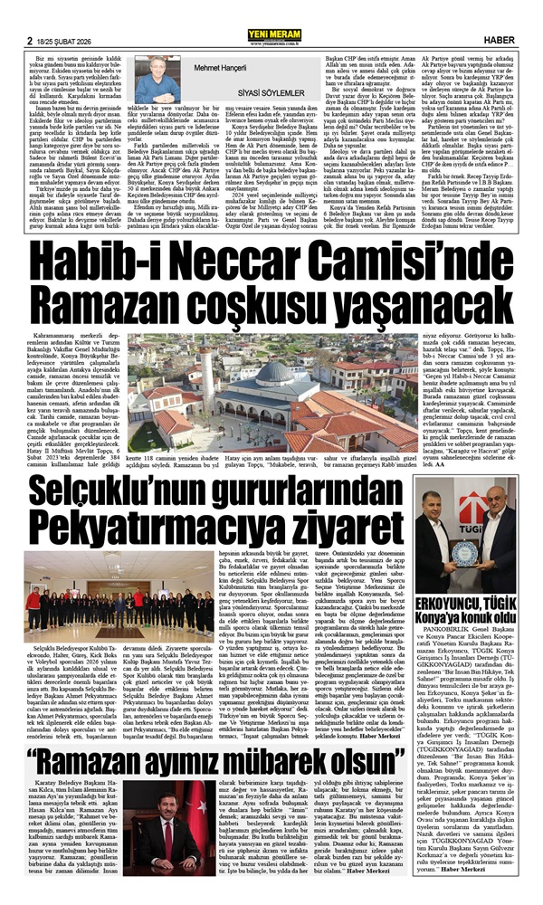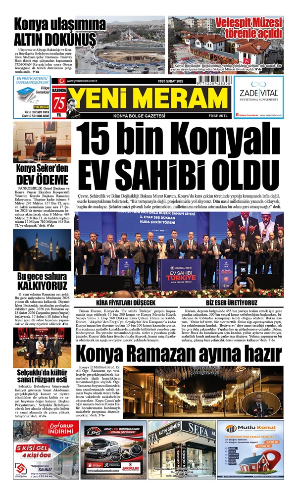 18 Şubat 2026 Yeni Meram Gazetesi