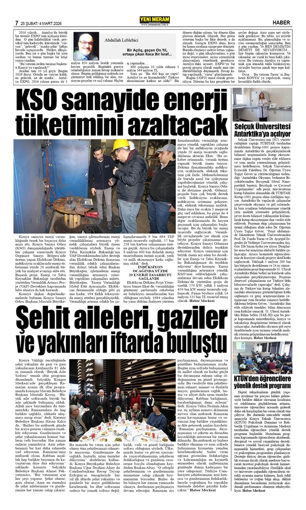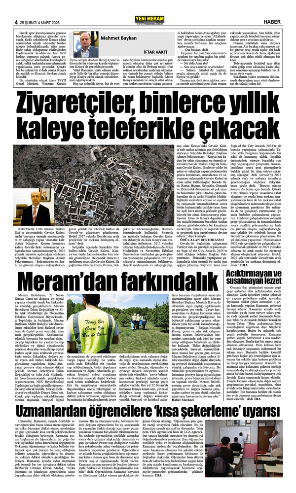 25 Şubat 2026 Yeni Meram Gazetesi