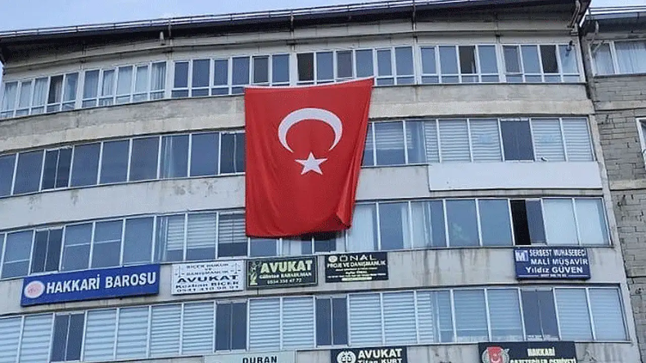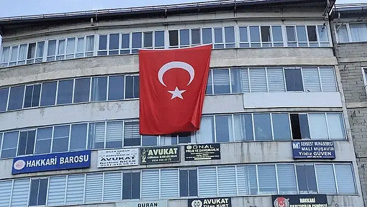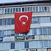 Kent merkezinin en işlek noktalarından biri olan Cumhuriyet Caddesi üzerinde bulunan ve onlarca iş yerine ev sahipliği yapan 10 katlı binanın cephesine dev Türk bayrağı asıldı.