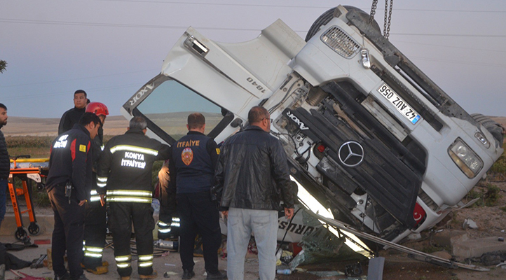 Konya’da kontrolden çıkan tır devrildi: 2 yaralı