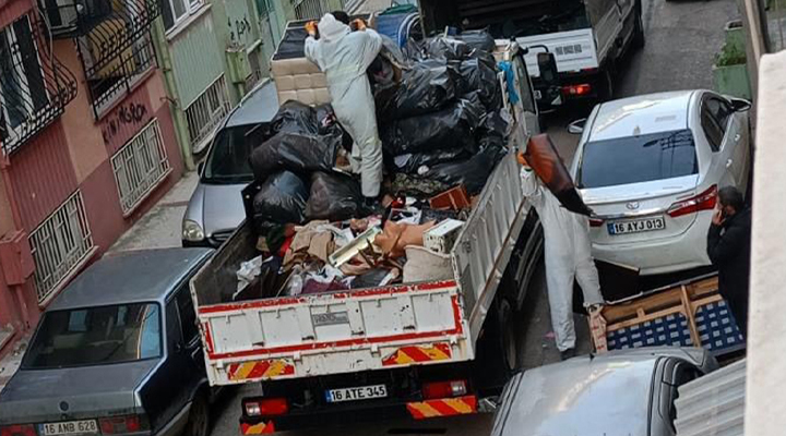 Kötü kokuların yükseldiği evden kamyon dolusu çöp çıktı!