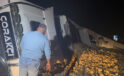 Aksaray’da köpeğe çarpmamak için sürücüsünün manevra yaptığı pancar yüklü tır refüje devrildi