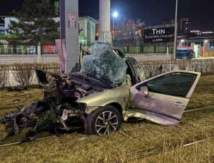 Kontrolden çıkan otomobil bariyerlere saplandı: 2 ağır yaralı