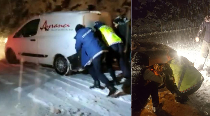 Antalya- Konya yolunda kar yağışı nedeniyle mahsur kalan vatandaşlara jandarma yardım etti