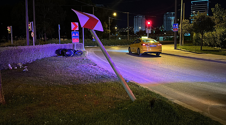 Motosiklet, viraj levhasına çarptı: 1’i ağır 2 yaralı