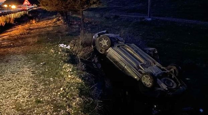 Takla atıp şarampole giren otomobilde 2 kişi yaralandı