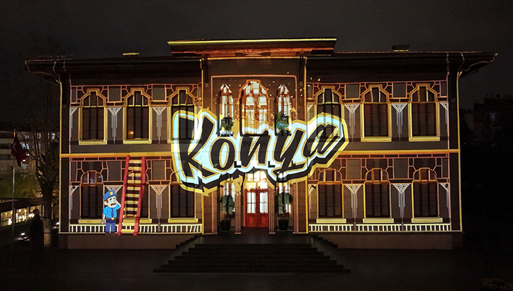 Konya Büyükşehir Belediyesi tarafından Taş Bina’da video mapping gösterisi gerçekleştiriliyor.