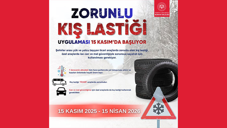 Valiliğin sosyal medya hesabından yapılan açıklamada kış lastiği uygulamasının 15 Kasım’da başlayacağı belirtilerek, araç sahiplerinin kışa hazırlıklı olması gerektiği ifade edildi. Paylaşımda kış lastiği uygulamasının 15 Nisan 2026’ya kadar devam edeceği vurgulandı.