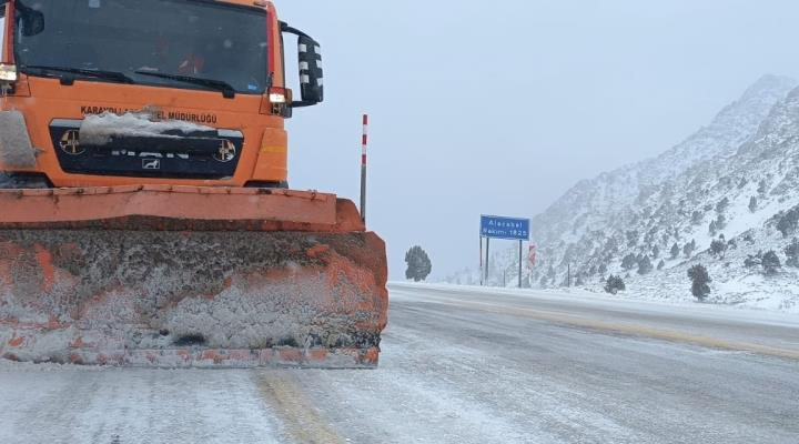 Konya-Antalya yolunda gece başlayan kar yağışı sonrası ekipler seferber oldu