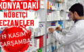 Konya’da bugün hangi eczaneler nöbetçi? 19 Kasım Çarşamba günü