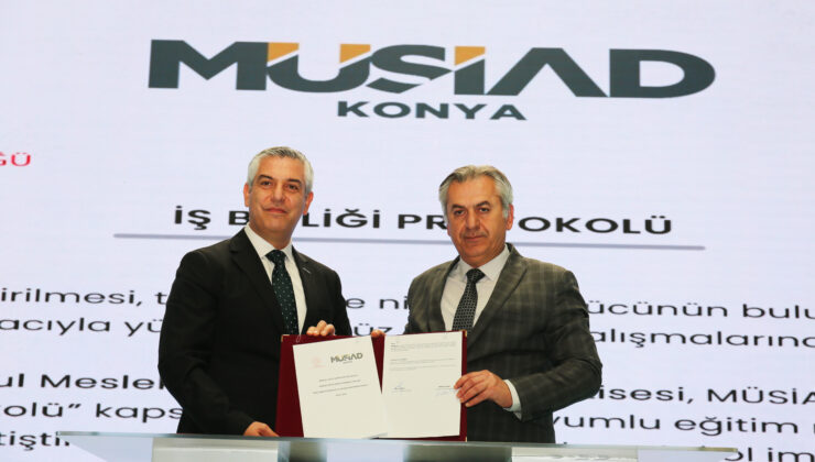 Konuşmaların ardından “Okul-Sanayi İş Birliği Protokolü” imzalandı. Protokol kapsamında, MÜSİAD Konya Şubesi’nin hamisi olduğu Kılıçarslan Borsa İstanbul Mesleki ve Teknik Anadolu Lisesi projede uygulama okulu olarak yer alacak. Bu iş birliği, öğrencilerin savunma sanayinin ihtiyaç duyduğu niteliklere uygun şekilde yetiştirilmesine, sektör ile eğitim kurumları arasında bilgi ve tecrübe paylaşımının güçlendirilmesine önemli katkı sağlayacak.
