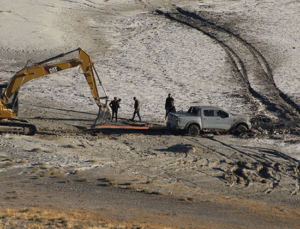 Meke Gölü’nde bataklığa saplanan aracı kurtarma operasyonu