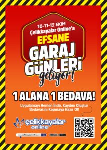 Konya’nın güvenilir alışveriş adresi Çelikkayalar, mağazalarında gelenekselleşen ve büyük bir coşkuyla karşılanan “Garaj Günleri” indirimlerini bu kez sadece online platformuna özel fırsatlarla taşıyor! Bu dev kampanya, 10, 11 ve 12 Ekim tarihlerinde yalnızca Çelikkayalar Online mobil uygulaması üzerinden sunulacak.