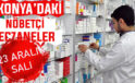 Konya’da bugün hangi eczaneler nöbetçi? 23 Aralık Salı günü