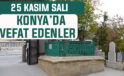Konya’da bugün kimler vefat etti? 25 Kasım Salı günü