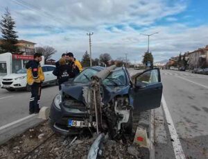 Kontrolden çıkan otomobil bariyerlere saplandı: 2 ağır yaralı