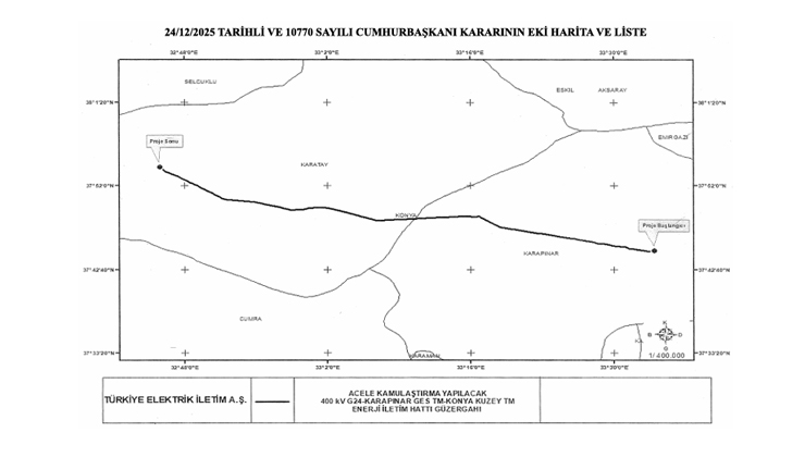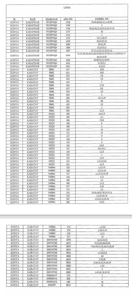 Karar, Konya’da Karapınar ve Karatay ilçesindeki bazı alanları kapsıyor. Alanların koordinasyonu ise şu şekilde açıklandı: