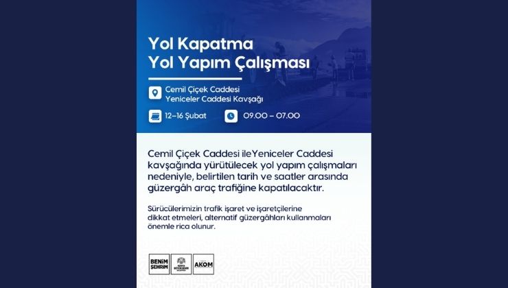 Yetkililerden yapılan açıklamaya göre, söz konusu güzergâh 12-16 Şubat tarihleri arasında her gün 09.00 ile 07.00 saatleri arasında araç trafiğine kapalı olacak.