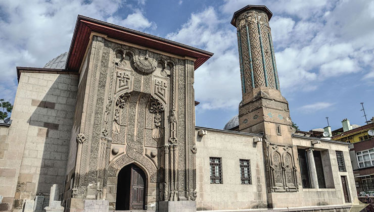 İnce Minareli Medrese, Alaaddin Tepesi’nin batısında bulunuyor. Selçuklu Sultanı II. İzzeddin Keykavus devrinde Vezir Sahip Ata Fahrettin Ali tarafından, hadis ilmi öğretilmek üzere 1264 yılında inşa ettirildi. Yapının mimarı Keluk bin Abdullah’tır (Kölük bin Abdullah). Darü-l Hadis Selçuklu Devrinin avlusu kapalı medreseleri grubunda yer alıyor.