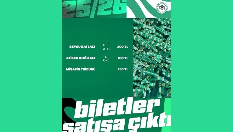 TÜMOSAN Konyaspor, Ziraat Türkiye Kupası Grup Aşaması B Grubu üçüncü hafta maçında Aliağa Futbol Kulübü’nü konuk edecek. 5 Şubat Perşembe günü saat 15.30’da MEDAŞ Konya Büyükşehir Stadyumu’nda oynanacak maçın biletleri satışa sunuldu. Doğu alt 100 TL, Batı alt ise 200 TL’den satışa çıktı. Kupa biletlerinin ligdeki Eyüpspor maçında pahalı olması dikkat çekti. İkinci devrenin ilk haftasındaki Eyüp biletleri tüm tribünler için 42 TL’den satılmıştı. Konyaspor’dan yapılan açıklamaya göre müsabakada Beysu Batı Alt ve Atiker Doğu Alt tribünleri açılacak. 2025-2026 sezonu kombineleri Ziraat Türkiye Kupası maçlarında geçerli olmadığı da hatırlatıldı.