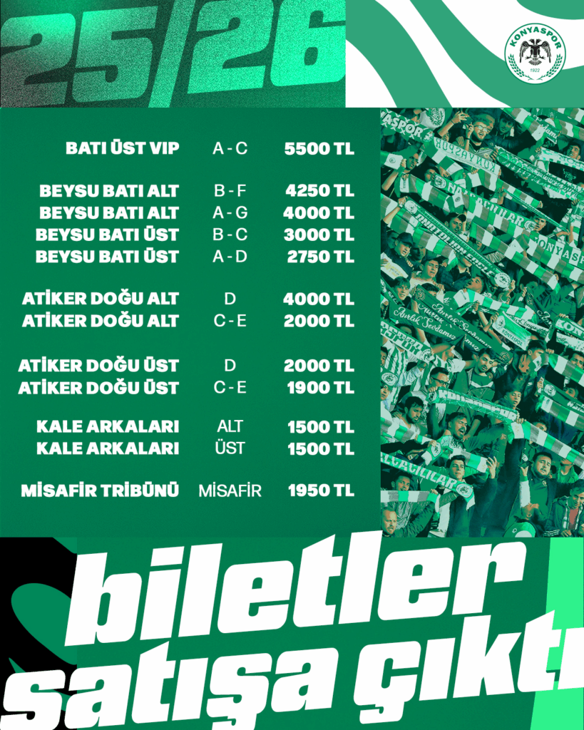 Yeşil beyazlı taraftarın ilgi göstermesi beklenen karşılaşma, 22 Ekim Çarşamba günü saat 20.00’de MEDAŞ Konya Büyükşehir Stadyumu’nda oynanacak.