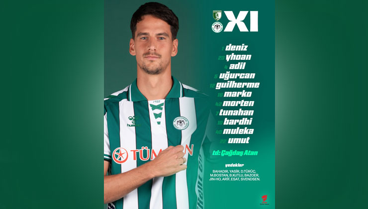 KONYASPOR’UN bugün Türkiye Kupası B Grubu 2. hafta mücadelesinde Bodrum FK ile deplasmanda oynayacağı maçın ilk 11’i belli oldu. Yeşil-beyazlılar, saat 18.00’de başlayacak müsabakaya Deniz, Yhoan, Adil, Uğurcan, Guilherme, Jevtovic, Bjorlo, Tunahan, Bardhi, Muleka, Umut Nayir 11’i ile çıkacak. Konyaspor’da yeni transferler maça yedek kulübesinde başlarken, cezasını tamamlayan Adil Demirbağ ise uzun bir aradan sonra takıma döndü ve maça ilk 11’de başlayacak.