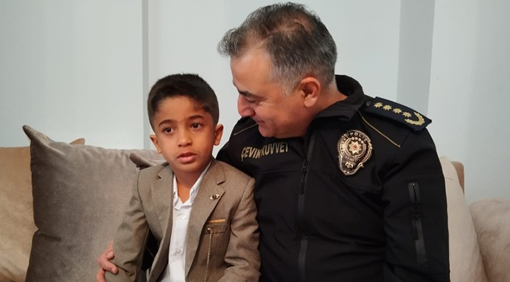 Minik Yiğit Eymen’in İstiklal Marşı duyarlılığına Emniyet Müdürü Orhan duyarsız kalmadı