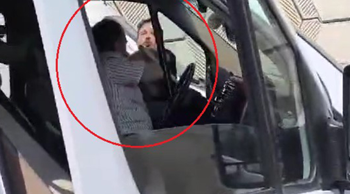 Minibüs şoförlerinin yumruklu yol verme kavgası kamerada