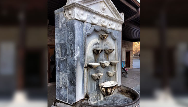 Mevlana Müzesi’nin bahçesindeki bu çeşmenin başka bir hikayesi de bulunuyor. Çeşme mimarı yapısı gereği en üstte bir sunak, altında 2, onun da altında 3 sunak ve sonra yine 2 ve 1 sunak şeklinde azalıyor. Bu ayrıntının temsili ise şu şekilde yorumlanıyor; İnsan dünyaya tek gelir, evlenir iki olur, çoluk çocuğa karışır 3 olur. Ama sonra ölümler başlar ve en sonunda yine tek başına ölür.