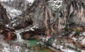 Konya’da karla kaplanan şelalenin nefes kesen görüntüsü