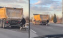 Konya’da seyir halindeki tırın peşinde motosikletli tehlikeli yolculuk