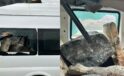 Minibüsün üzerine dev kayalar düştü, 3 kişi şans eseri kurtuldu