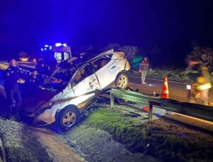 Kontrolden çıkan otomobil bariyerlere saplandı: 2 ağır yaralı