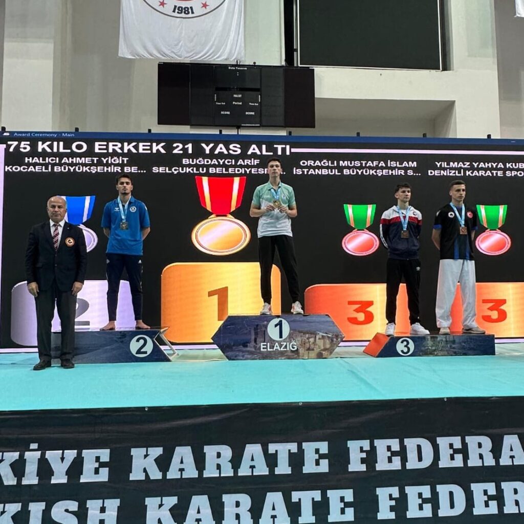 SELÇUKLU Belediyespor Kulübü Karate Takımı sporcusu Arif Buğdaycı, Elazığ’dan Türkiye şampiyonu olarak döndü. Türkiye Ümit-Genç-U21 Karate Şampiyonası Elazığ’da gerçekleştirildi. Şampiyonada mücadele eden Arif Buğdaycı, 75 kiloda Türkiye şampiyonluğunu elde etti. Konuyla ilgili mavi-beyazlı kulüpten yapılan açıklamada, “Tebrikler Arif Buğdaycı. Elazığ’da düzenlenen Türkiye Ümit-Genç-U21 Karate Şampiyonası’nda sporcumuz Arif Buğdaycı, gösterdiği üstün performansla U21 75 kiloda Türkiye şampiyonu oldu. Balkan Şampiyonasına katılma hakkı kazanan sporcumuzu ve antrenörlerimizi tebrik ediyoruz” ifadelerine yer verildi.
