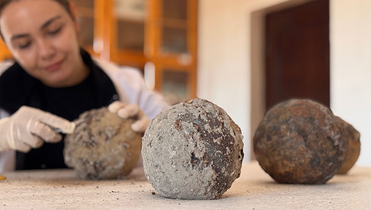 “Bu gürz ya da topuz dediğimiz malzemeler şehir surlarında gücü temsil etmek amacıyla kullanılır. Bunlar zincirlerle kapıya asılıyor. Larende Kapısı’nın eski gravürlerinde de bu topuzların yer aldığını görüyoruz. Yaptığımız kazı çalışmalarında da şu an konservasyonu yapılan 7 topuz açığa çıkarıldı. Selçuklu kalelerinde genellikle kapının sağında ve solunda bu topuzlar yer alıyor. Kazıda kapıyı ortaya çıkarıyoruz. Kapının etrafında bunların ortaya çıkarılması, kazıya ayrı zenginlik kattı.”