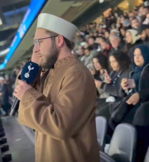 İngiltere Premier Lig ekiplerinden Tottenham’ın stadında yüzlerce kişi ramazan orucunu açmak için bir araya gelirken ezanı Londra’da görev yapan Türk imam okudu.