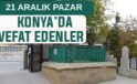 Konya’da bugün kimler vefat etti? 21 Aralık Pazar günü