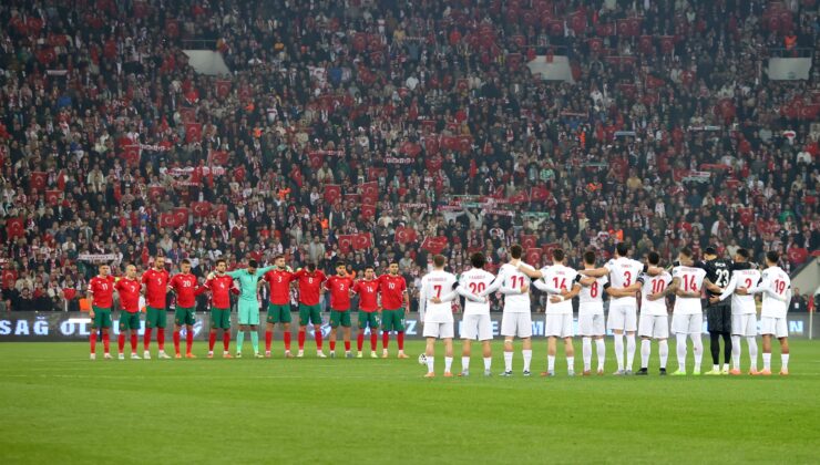 Türkiye – Bulgaristan müsabakası öncesinde Azerbaycan – Gürcistan sınırında kargo uçağının düşmesi sonucu şehit olan 20 kahraman askerimiz için saygı duruşunda bulunuldu. Millî futbolcularımız ısınmada sahaya “Aziz Milletimizin Başı Sağ Olsun” yazılı pankartla çıktı.