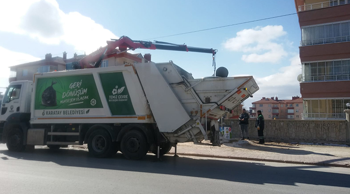 Konya’da belediye ekibinin yeraltı çöp konteynerini çıkarma imtihanı